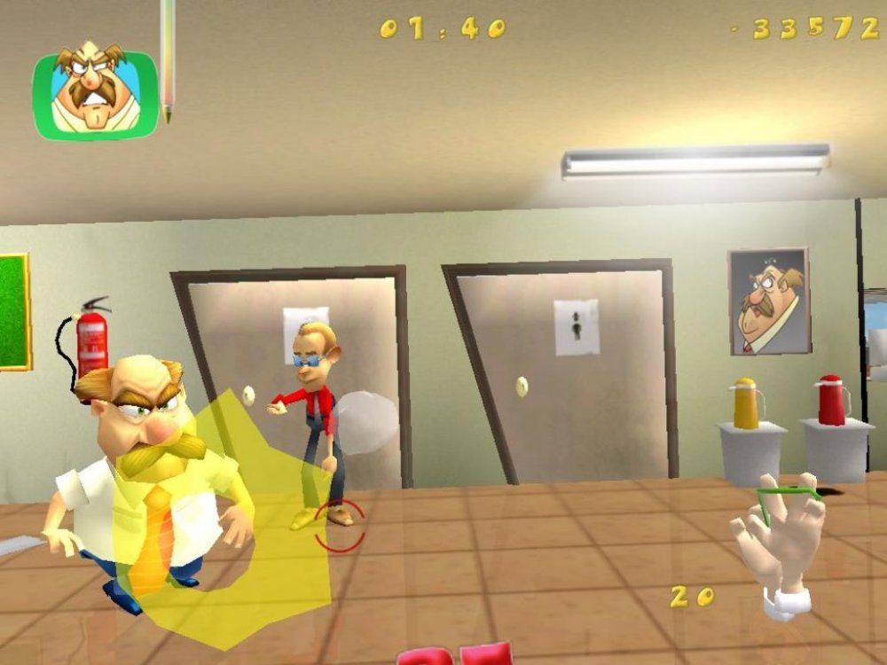 - Не напряженный игровой процесс. Достаточно лишь стрелять в разные объекты, находящиеся в офисе, а также в самого босса – больше ничего не нужно делать;